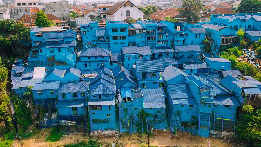 One on side of the bridge is the ‘Colorful village’ and on the other side is an entirely blue village (Kampung Biru Arema). In a similar fashion, this village has been painted entirely blue.