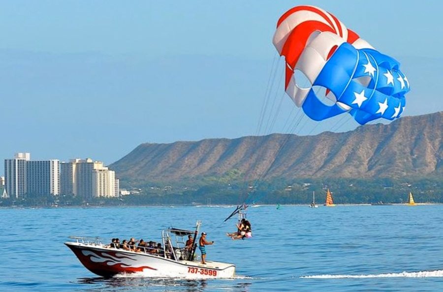 What better way to see Oahu than from hundreds of feet up in the air. Parasailing is the perfect activity on Oahu as the sun sets so you can enjoy the beautiful colors from up high, looking down on the city. This tour includes hotel pick-up and drop-off.