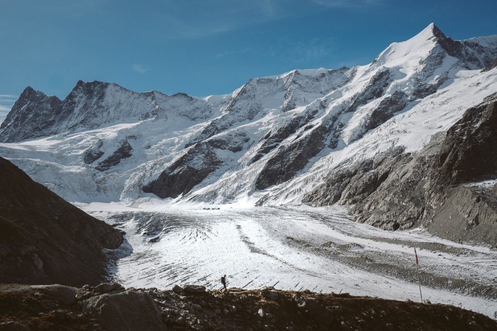 Baregg Hut (Bareghutte) is perched on the edge of a cliff, overlooking the lower Grindelwald Glacier. It’s just a 3km walk from Pfingstegg and is a great place for an overnight stay and a basecamp to hike to the Schreckhorn Hut (Schreckhornhutte). I caught the train from Interlaken to Grindelwald and began from there and returned the next day. My hostel let me leave my bags in their lockers for free.