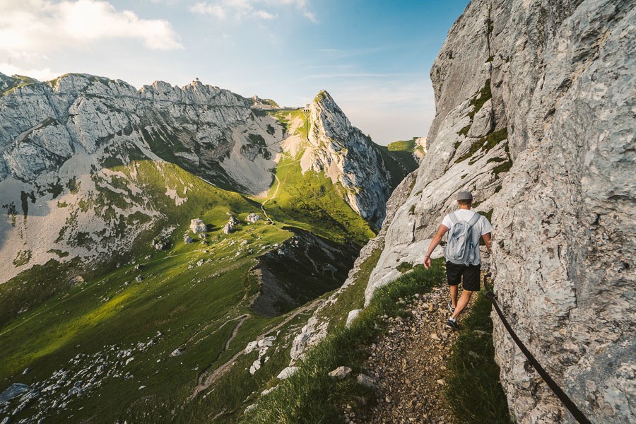 The Hardergrat Ridge hike has to be somewhere at the top of this list. It’s known as one of the toughest hikes day-hikes in Switzerland and also one of the most dangerous. The trail begins at Brienz and runs along the Brienzersee (Brienz Lake) all the way to Harder Kulm Station. Along the route, you will traverse the narrow ridge trail. Expect steep drop-offs and some scrambling along the route. One of my favorite parts about this epic hike in Switzerland is the chance to bump into the resident Ibex colony now the Augstmatthorn peak along the route.