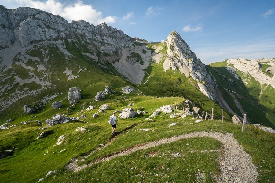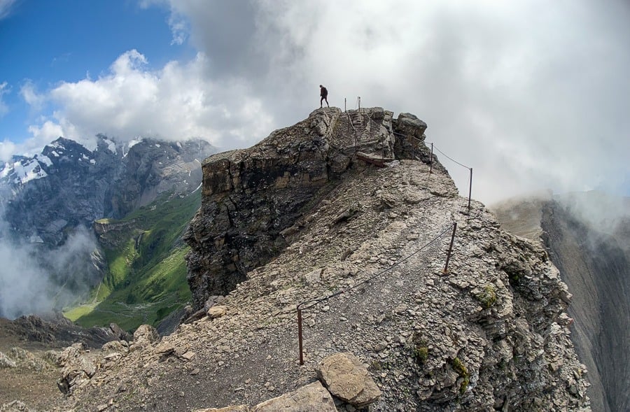 It takes fit hikers about six hours to complete and there are many parts with very, very steep drop-offs. It is for experienced hikers and to be avoided on wet days is the steep cliffs can be unforgiving. It’s possible to get the train up to Brienz and then book the train down from Harder Kulm so you just hike along the ridge but you will need to hike fast and with determination because if you miss the last train you will be hiking down another 800m of incline.