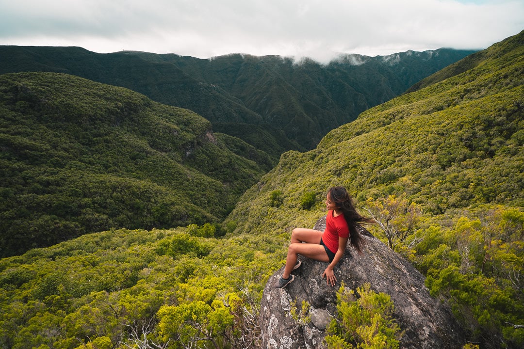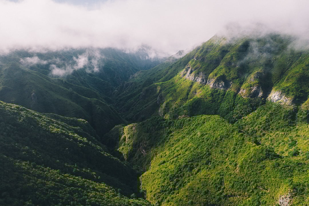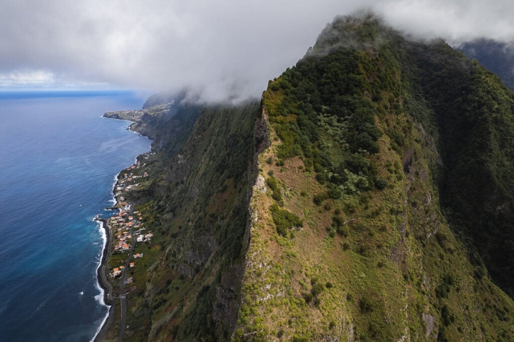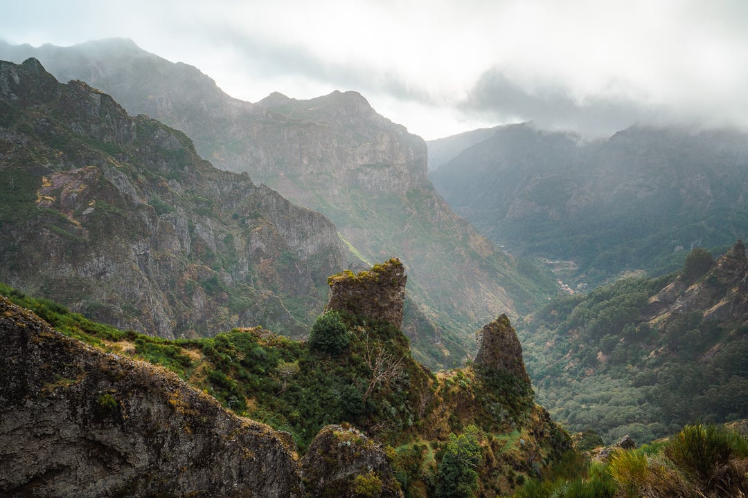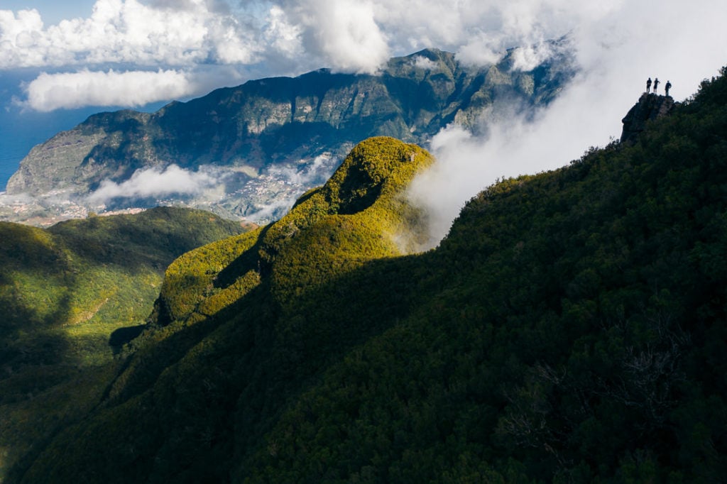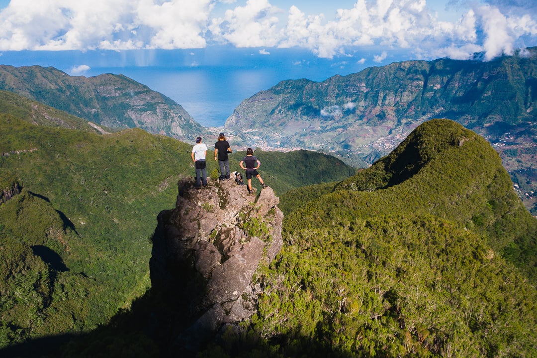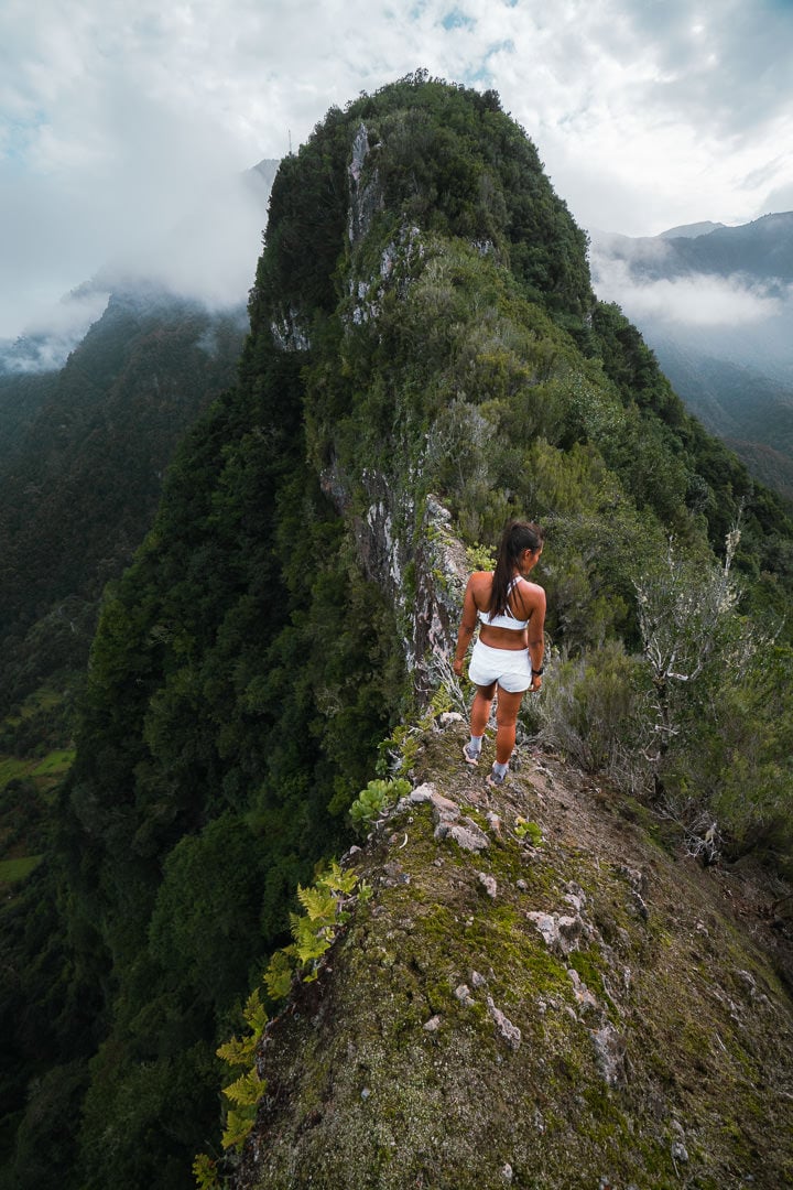 One of the best, lesser-known viewpoints in Sao Vicente is Pico da Fajã Madeira. The route begins near the Monte Trigo trailhead, deep in the Sao Vicente Valley near the freeway tunnel. A few turns through the forest and across the river lead you to a steep but manageable climb. Near the top of the climb the technical difficulty increases significantly and it’s an area of scrambling and exposed rocky, narrow trails. The route is akin to a large ramp but from the valley side, it looks like a sharp, narrow pinnacle. On top of the peak is just a small perch for about 5-6 peopleto enjoy the views in all directions. You can do this hike as a short out and back or continue on up to Encumeada and back down as a loop.