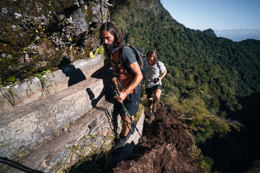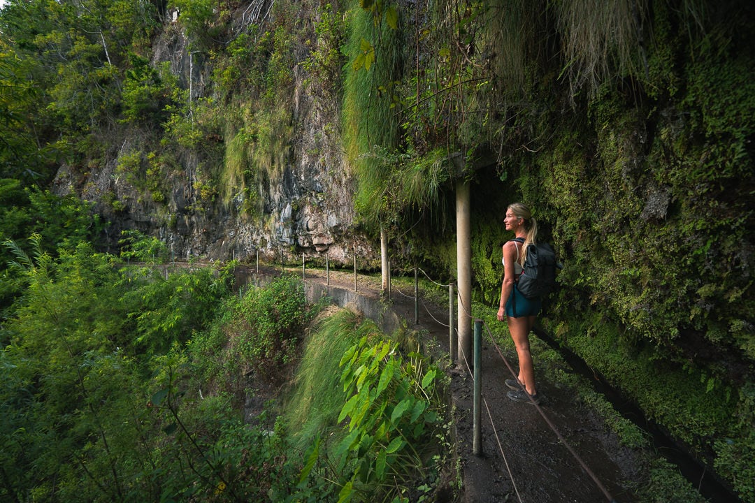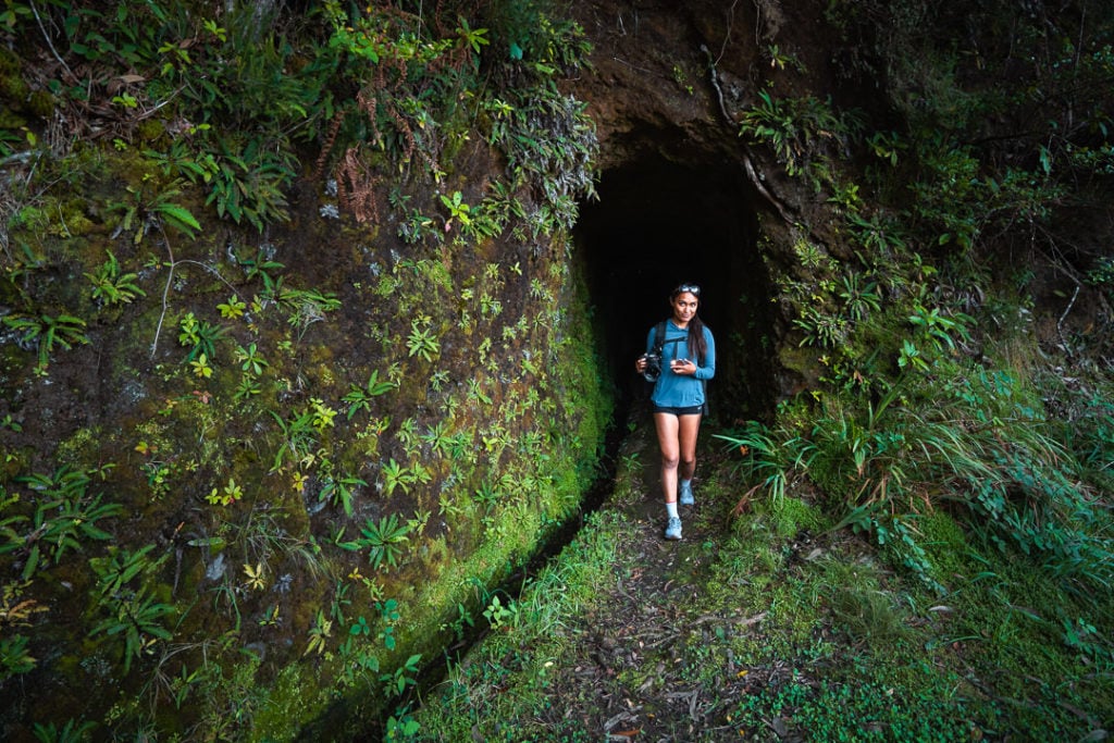 The trail is moderate on the difficulty scale. It’s not dangerous by any means but there are a few components that make it a little interesting. First, you have a 1.6 km-long tunnel that requires a headlamp and concentration. Then you have uneven surfaces beside the levada with big drop-offs. There is a wide path but you have no railing or safety fence so you need to stay vigilant.