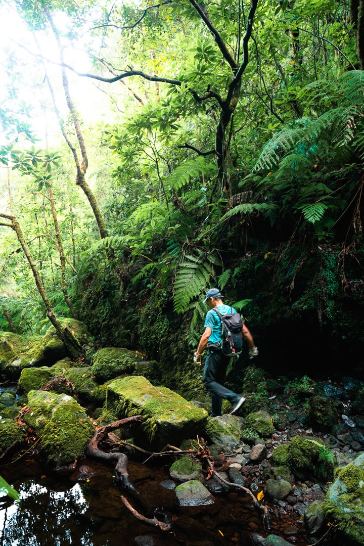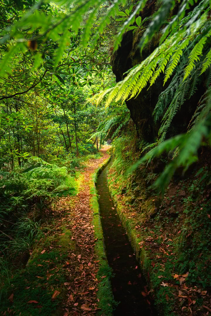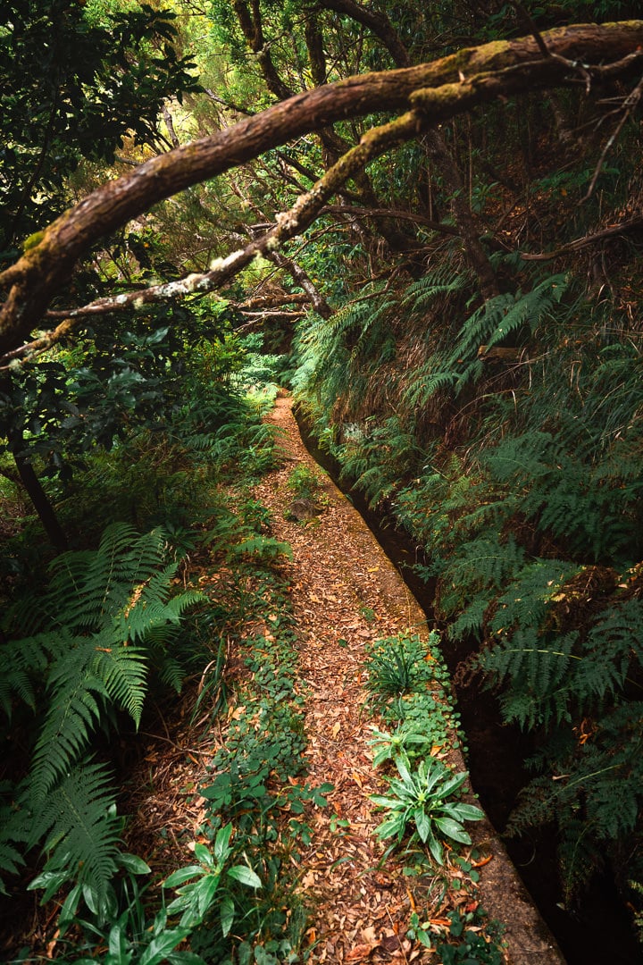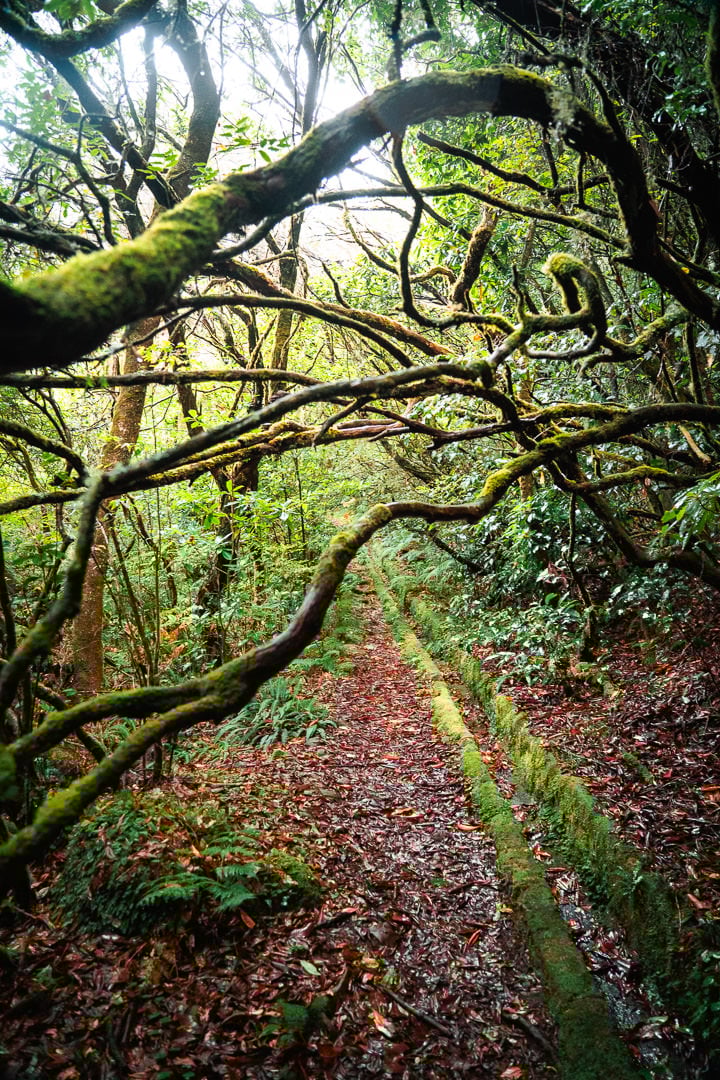 The Ribeiro Frio to Chão das Feiteiras levada hike is a peaceful journey through the incredibly lush, UNESCO Heritage Laurissilva forest of central Madeira Island. There is no ‘epic viewpoint’ or incredible waterfall on this trail. However, what you will find is a quiet trail where you can become fully immersed in the forest. Hear the noises of the birds, and notice the sound of the rain dropping from the leaves as you delve deep into the forest along this levada walk.