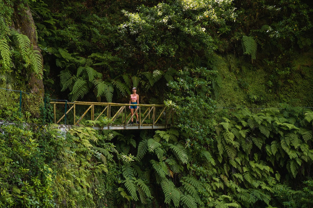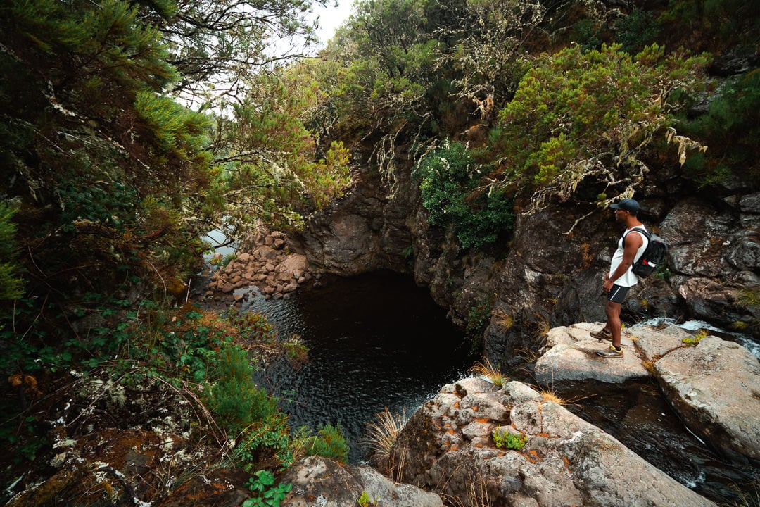 The Poço das Pulgas waterfall hike is an off-the-beaten-path adventure through the jungle to explore several incredible waterfalls. If you choose, there is an extended route option to the Rocha dos Pombos viewpoint, which looks down over the town of Ponta Delgada. On my hike, I also combined the trek with a visit to Caldeira de São João, another massive waterfall. This is a truly wild setting and the lush forest that surrounds these waterfalls create a very magical atmosphere. I did this hike with Madeira Wonder Hikes for the extended route to the viewpoint but if you do the smaller route for just the waterfalls, it could be possible by yourself.