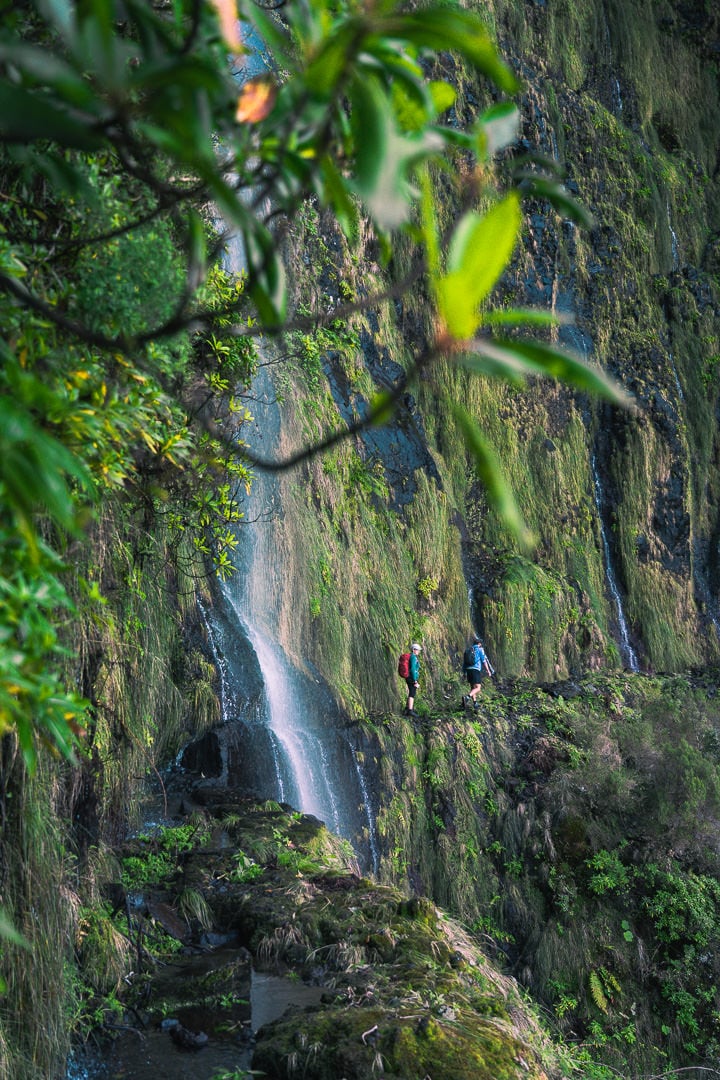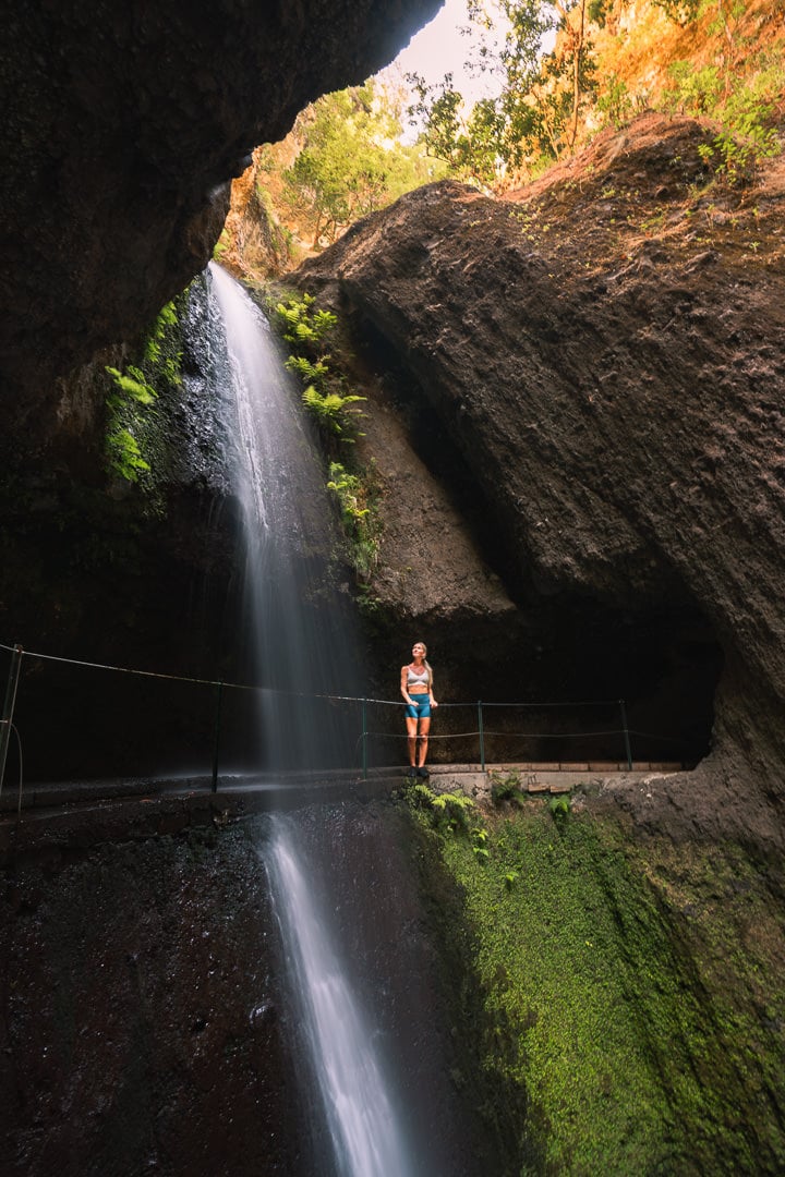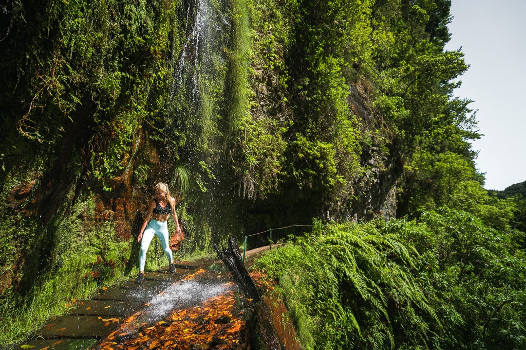 The trail is moderate on the difficulty scale. It’s not dangerous by any means but there are a few components that make it a little interesting. You have uneven surfaces beside the levada with big drop-offs at times where there is no railing. You need to take care during these sections. There is a wide path but you have no railing or safety fence so you need to stay vigilant. On the return section of the loop route, there are more exposed sections and a few narrow paths that take you under waterfalls.