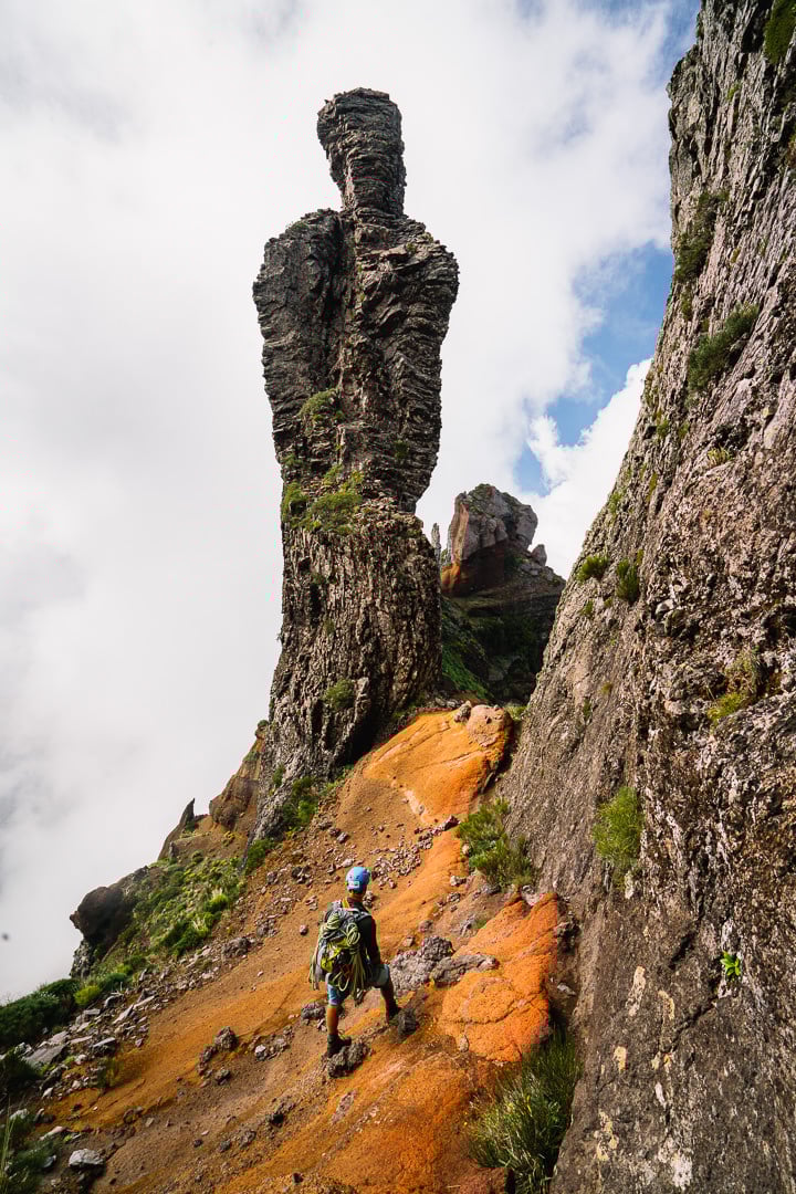 The Bica da Cana Pinaculo hike is one of the less popular trails on Madeira Island but it offers some incredible views. After enjoying the Bica da Cana viewpoint with scenes of the cloud-filled valley below and views out to Pico Ruivo and Pico do Arieiro, you can then head off on the 4.7km loop trail. The hike takes you to the base of the Pinnacle, a striking rock formation that most people admire from the ground but I decided to free-climb the pinnacle to the top.