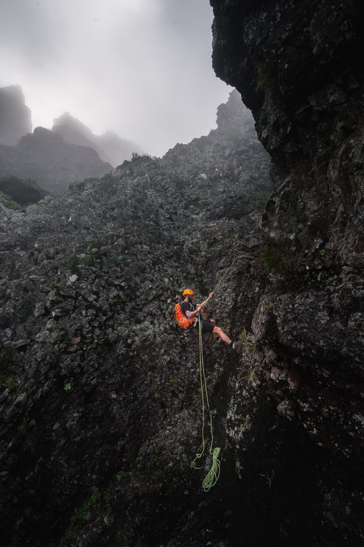 There are hundreds of incredible hikes on Madeira but sometimes you need to take it up a level and reach new heights. On this adventure, I headed up from Pico do Arieiro to the summit of Pico das Torres. There was some scrambling, abseiling and some basic rock climbing involved in this ascent, which was done as part of a tour with local legend, Gonçalo Silva. On this day we were lucky to have incredible weather in the morning before the clouds came in to create a dramatic atmosphere up amidst the tallest peaks on Madeira.