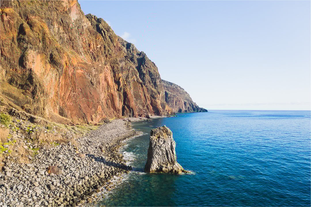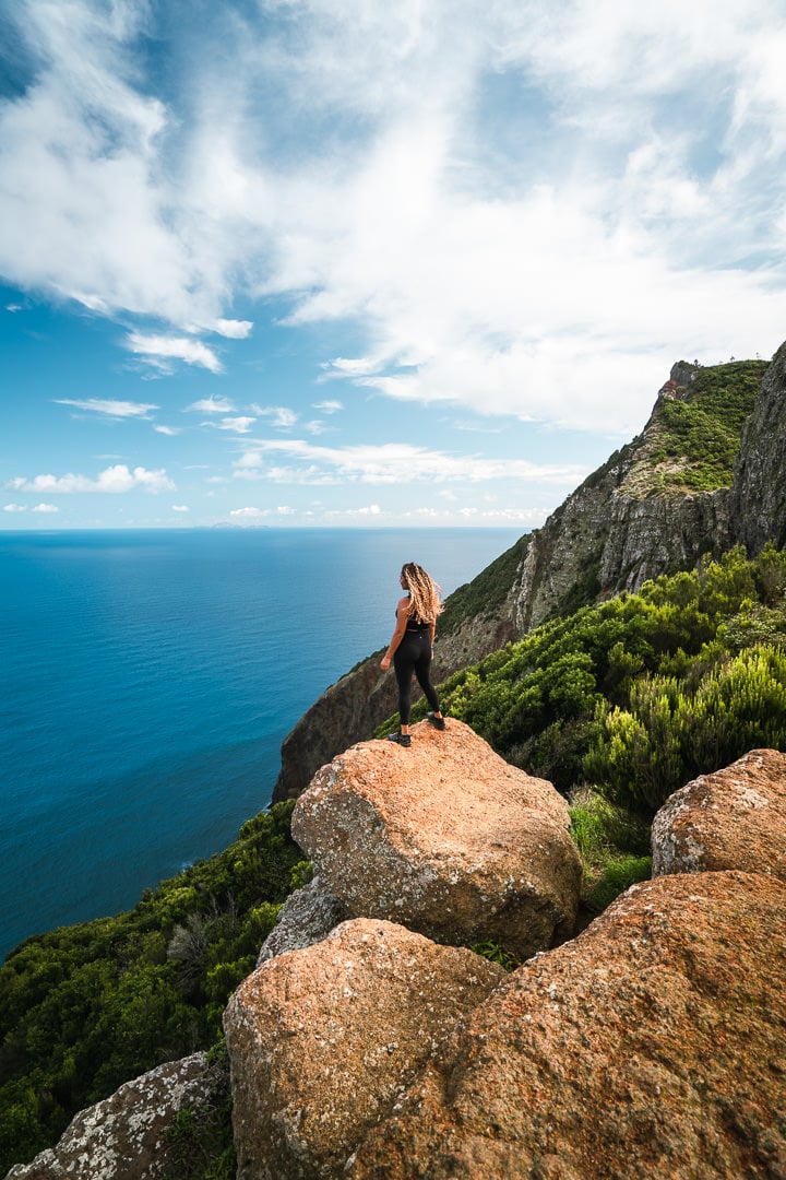 A 400-meter climb to the top gives you stunning views over Porto da Cruz and all the way to São Lourenço, the most eastern tip of the island. The hike then crosses the top of the rock to finish by leading you down into Faial. It’s a little wild but offers amazing coastal views.