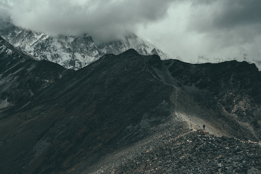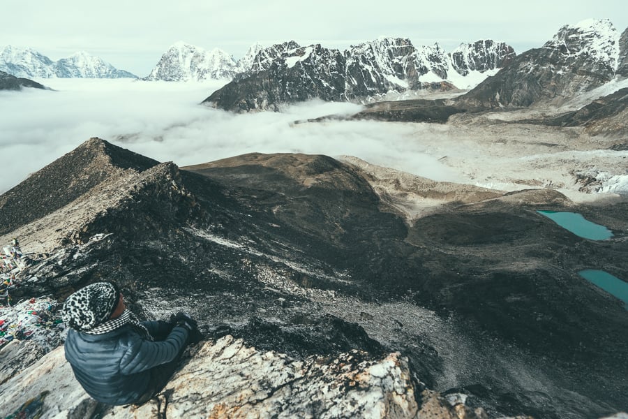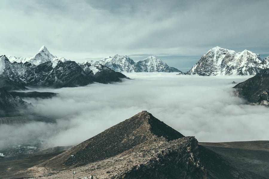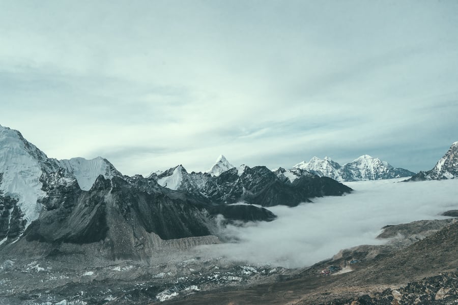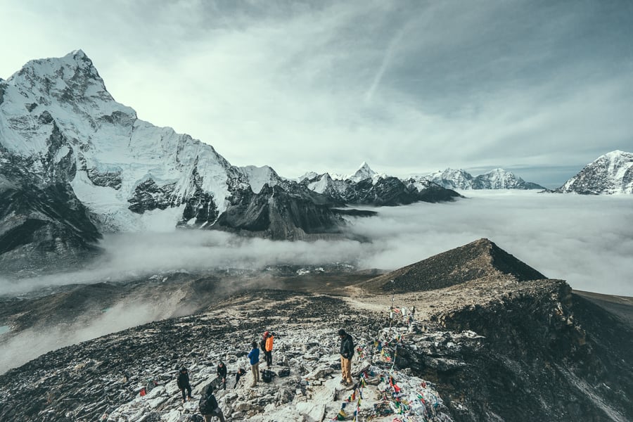 It’s only a 3-kilometer round-trip trek from Gorak Shep with 300 meters of incline but at such high altitude, it can be quite difficult. I suggest starting 1.5-2 hours before sunrise so you are at the summit when the morning glow begins. After enjoying the sunrise with epic views of the cloud-filled valley and Mount Everest, we began the trek back down to Lukla.