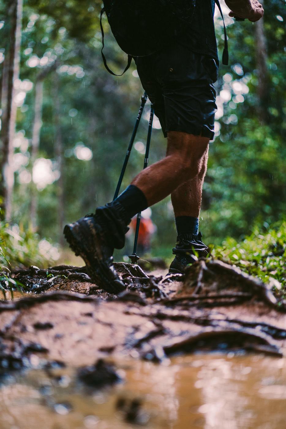 Flip-flops are particularly useful for shallow river crossings. If your shoes haven’t been soaked by the rain, it’s better to keep them dry whilst you can. Switch out your hiking boots and put on a pair of flip-flops to maneuver through the rocks underwater.