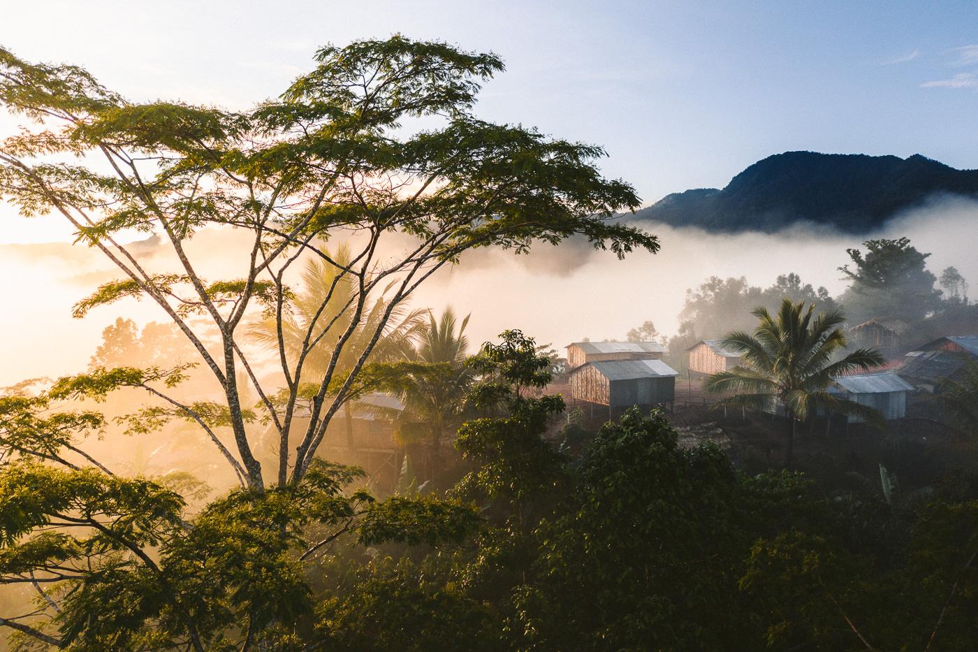 The drone was great but a lot to carry for eight days considering I could only use three batteries as there is nowhere to charge along the way. I shot some nice stuff at sunrise along the trail at one of the villages and then at the end in the jungle on day seven for a higher perspective.