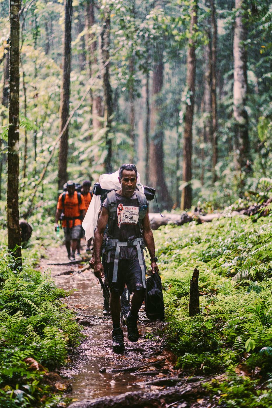 The boys told us to expect the unexpected in Papua New Guinea, you never know what the weather is going to do. The great thing about tropical rain, even if it is torrential, is that it’s not cold. We pushed on in our t-shirts and shorts not overly bothered by the ridiculous downpour that just soaked us. The great part about the downpour was that it meant there was no need to take your shoes off for river crossings, there was no point.