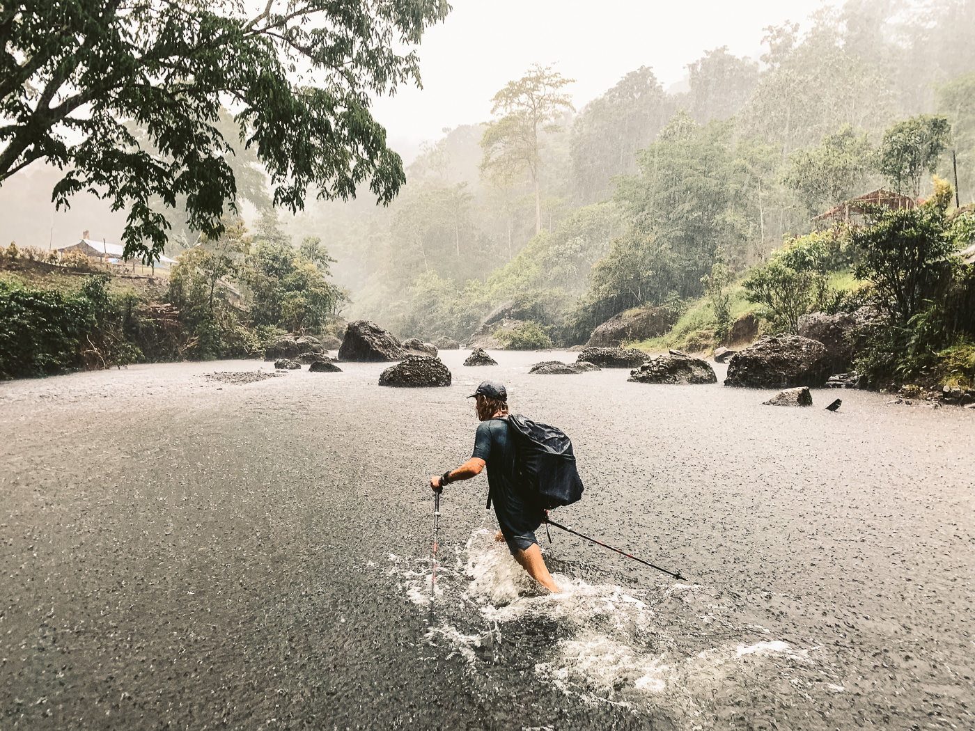 We packed all our important gear in a dry bag and then placed it inside our backpack for extra protection. When you’ve seen as many people lose their phones or camera gear to water damage as I have, you’ll understand why I place so much importance on a waterproof dry bag. A quality dry bag will do as it suggests by keeping your belongings air-tight even if the bag happens to become fully immersed in water during river crossings or heavy rain.